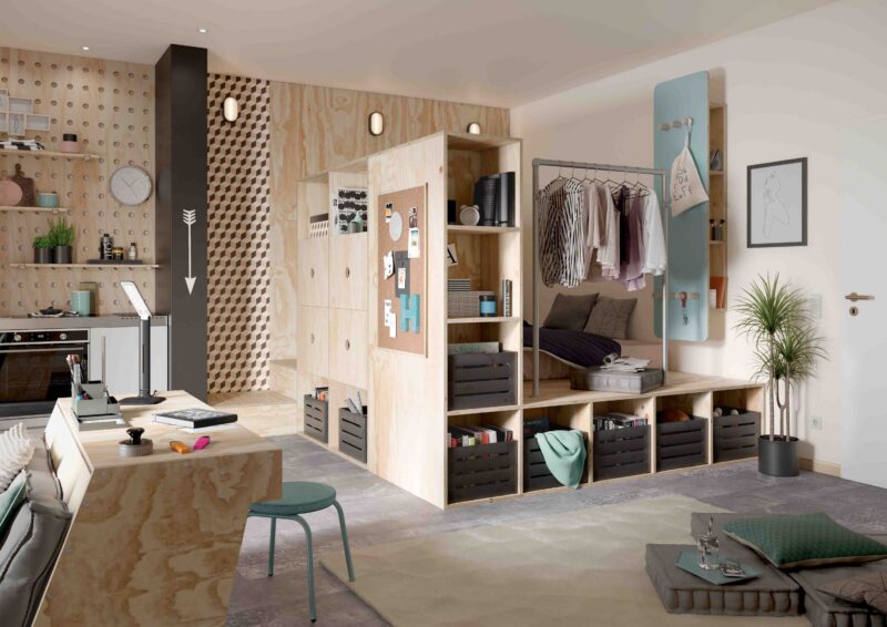 Dobré je myslieť aj na priestory, ktoré nie sú bežne využívané a urobiť z nich úložné. Ide napríklad o policový systém nad dverami, úložné priestory v sedacej súprave či šikovné skriňové systémy, vďaka ktorým sa využije každý decimeter miesta. Dobrým riešením do malých bytov je aj poschodová posteľ.