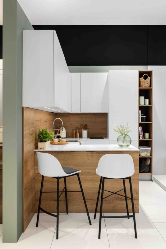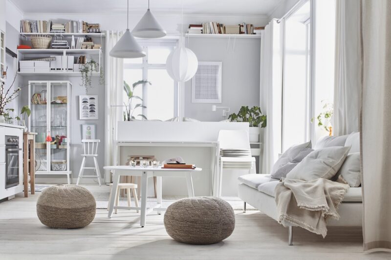 Do priestoru, ktorý je potrebné opticky zväčšiť, patria otvorené skrinky, poličky, nižší nábytok a šikovné rozkladacie a stohovateľné riešenia. Mohutné vitríny, v nich porcelán a k tomu ešte minimálne jedna obrovská skriňa je zlé riešenie, ktoré je nielen nevzhľadné, ale navyše pohltí obrovské množstvo priestoru, ktorého v malom byte nie je na rozdávanie. Na otvorené priestory sa bude síce viac prášiť, byt však bude pôsobiť vzdušným dojmom.