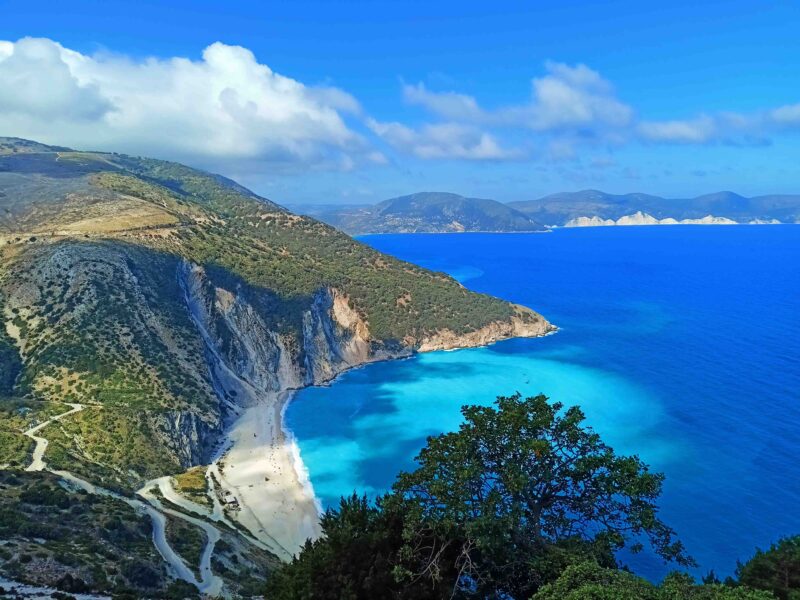 Vedeli ste, že na Kefalónii je jedno z najfotografovanejších miest v celom Grécku? Ide o pláž, ktorá patrí do rebríčka top svetových pláží. Stačí sa zastaviť na vyhliadke cestou z Assosu a sami sa o tom presvedčíte. Pohľad z výšky 900 m na zelené kopce, šíre more, biele skaly vynárajúce sa z vĺn v kombinácii s úžasne modrou farbou, sa vryje každému do pamäti.