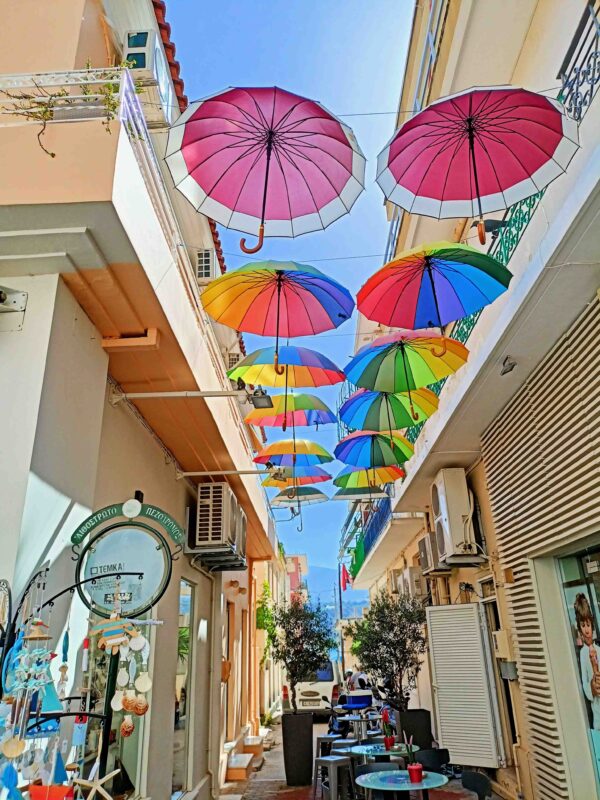 je námestie s pešou zónou a prístavná promenáda s rybárskymi loďkami a jachtami, pomedzi ktoré rady plávajú korytnačky Caretta. Stačí nájsť nápis I♥ Kefalonia a viete, že ste na správnom mieste. V uličkách najviac počuť hlučných Talianov, ktorí sem húfne jazdia už od 80-tych rokov. Len kúsok od prístavu je najdlhší kamenný most na svete Drapano, bol postavený v r. 1830 a má 700 m. Z prístavu vyráža trajekt každých 30 minút do mesta Lixouri aj späť, za sympatické 3 eur/os. Je to živé kultúrne centrum s mnohými múzeami a príjemnou atmosférou.